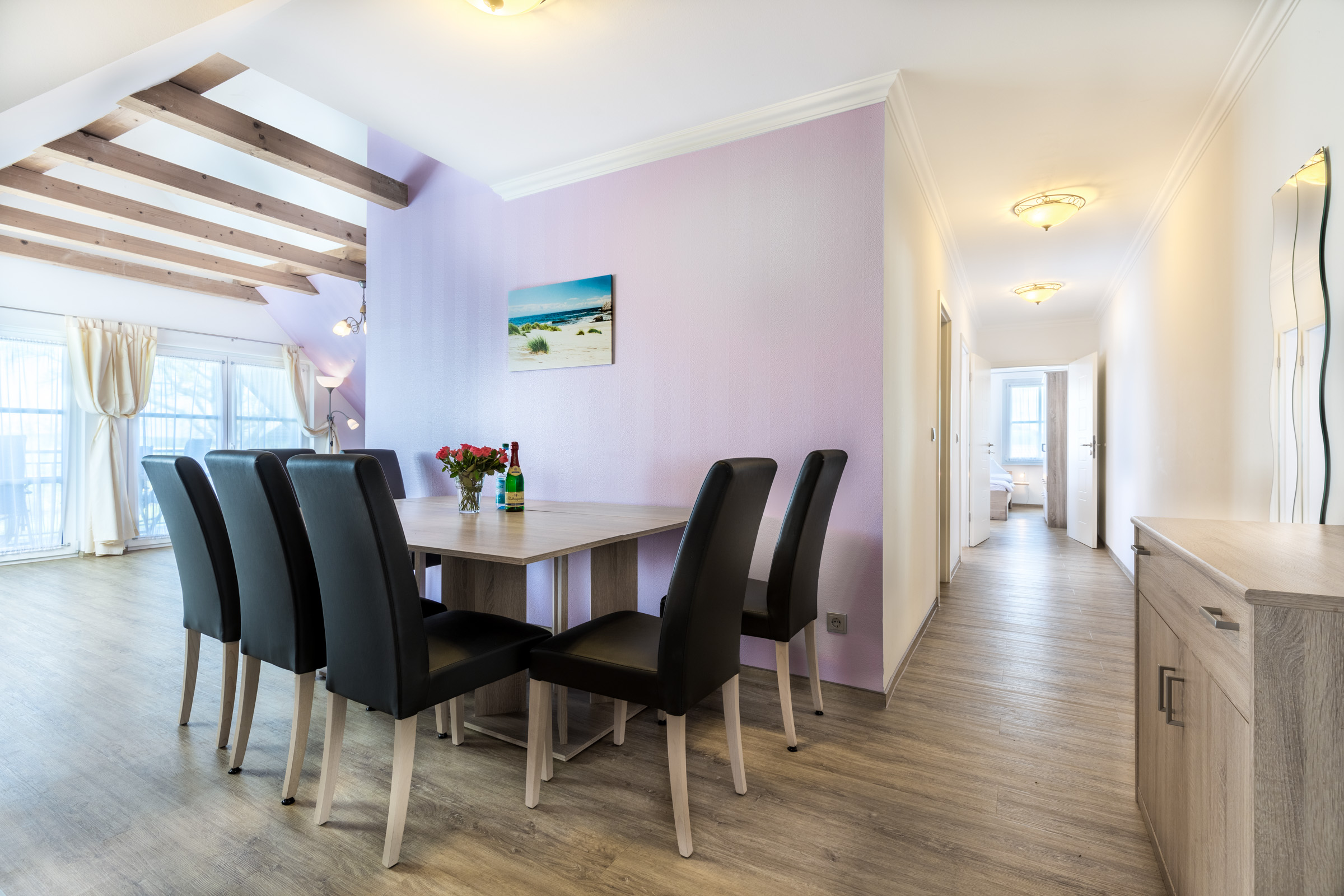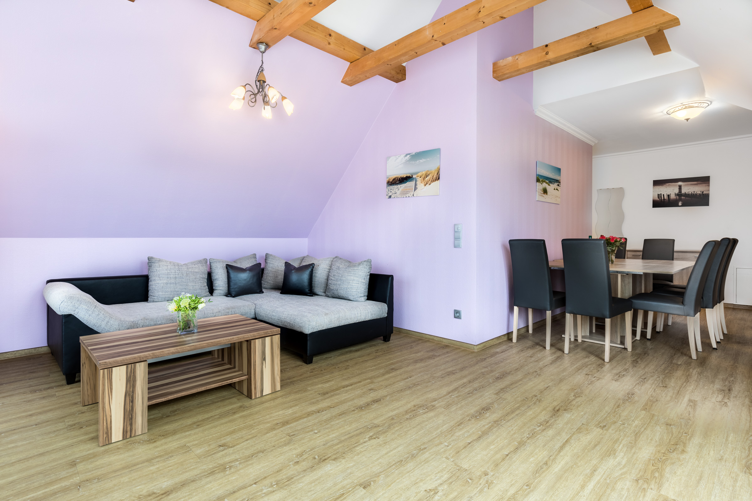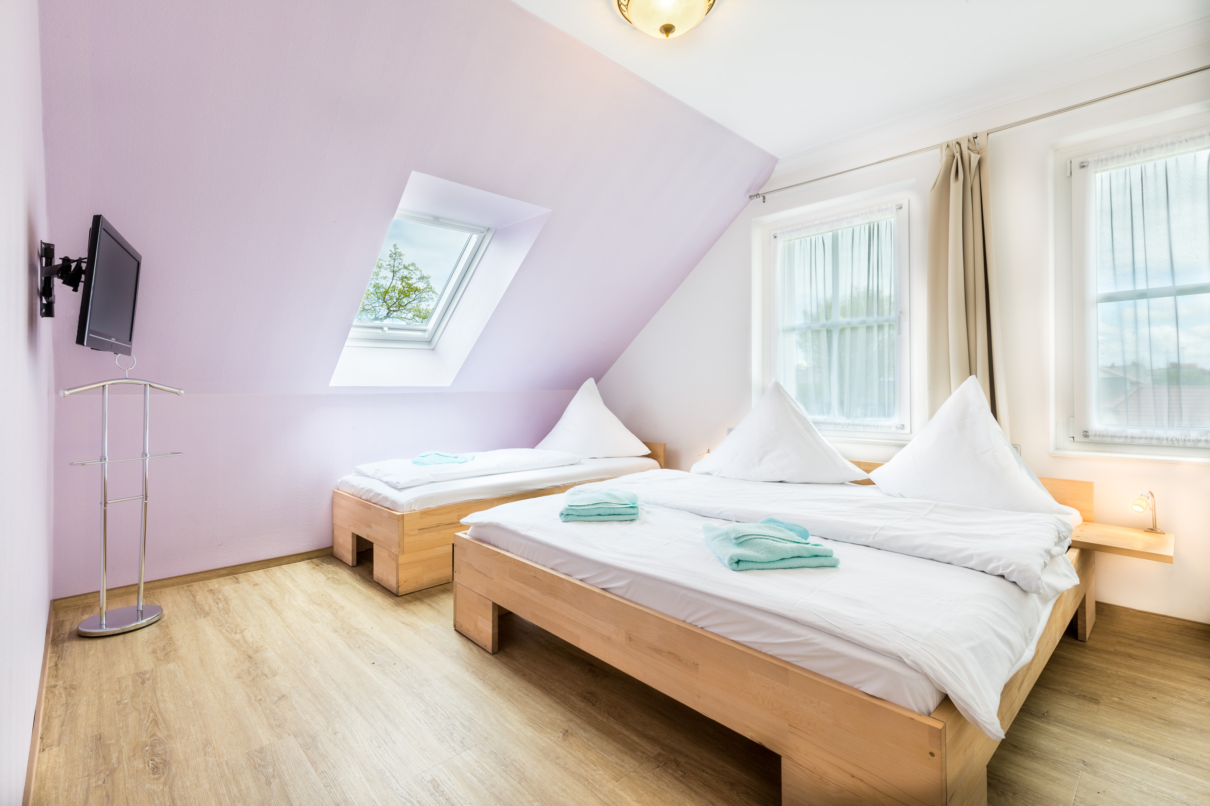 Die Ferienwohnung Kerstin befindet sich im Obergeschoss. Die 3-Raum-Ferienwohnung hat eine Größe von 70m² und ist geeignet für 1-7 Personen. Die Ferienwohnung verfügt über 2 Schlafzimmer.